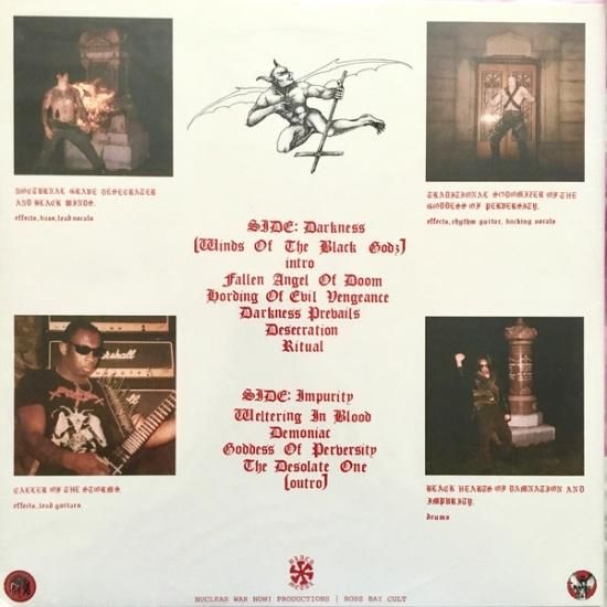 これがメタルなのか?とゆう人もいるくらいグラインドコアに近い音ですがそれはい今だからそう言えてしまうわけであって当時本気でVENOM,SODOM,BATHORY,SARCOFAGO,等のBLACK METAL先人たちに触発されてより過激に、究極の何かを追及してBLASPHEMYが創り上げた音はグラインドコアとは全く別のものだと思います。つまりこれがWAR BLACKです!
