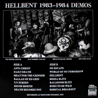たった一年足らずの活動期間の間、当時NYにやってきたDISCHARGEやEXPLOITED、そしてSAMHAIN等のサポート等のギグをこなしながらかの名エンジニアDon Fury氏のDemo Demo Studiosでレコーディングされた本音源はどうやら当時デモテープ、という形ですらリリースされずにお蔵入りになっていた模様!