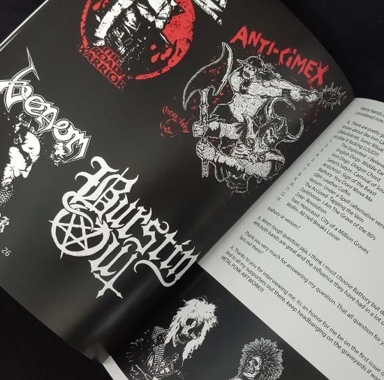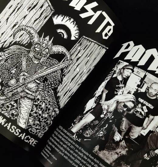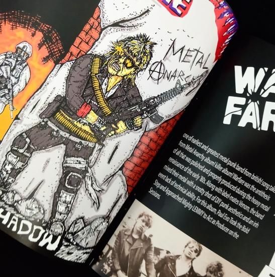 まさに見て、読んで(英語ですが) 楽しむMETAL PUNK!!というコンセプトのもと、METAL PUNK界の主要イラストレーターへのインタビューやグループ達に捧げられたアツいコテコテイラストレーションが濃厚に展開するA5サイズオールカラー全45ページ限定150部!!