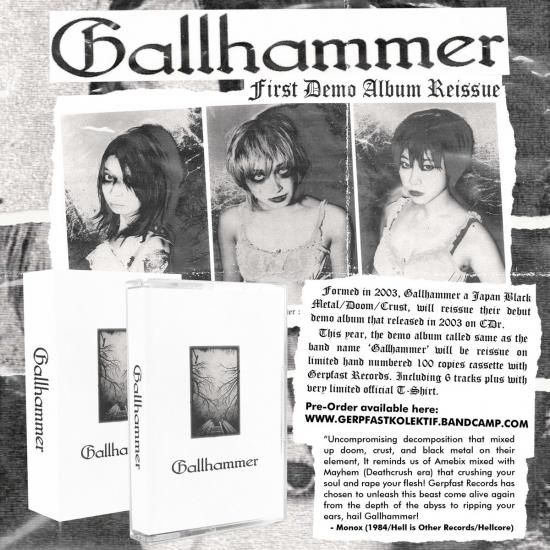2003年に結成、2013年頃まで活動し現在は活動休止中とされる東京BLACK / DOOM / METAL / CRUST伝説グループ、GALLHAMMERが2003年にCDRのみでリリースしていた1stデモをインドネシアの新興レーベルがカセットリリース!