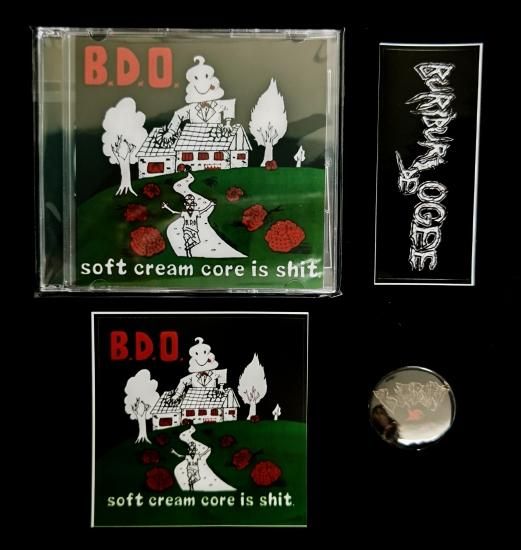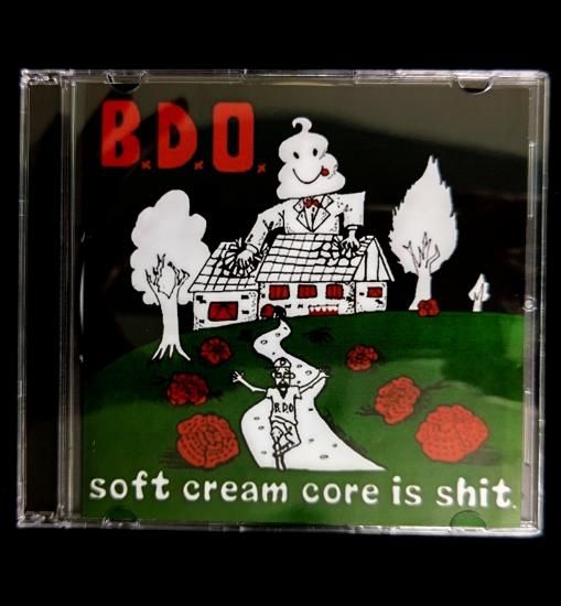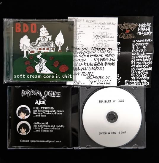 SOFT CREAM CORE IS ウンコ、NOISE FOR DEPRESSION=落ち込むためのノイズ、TORTURE THRASH TIL SLEEP= 眠くなるまで拷問スラッシュの文句が書かれたインサートに記載された曲目クレジットは全30曲になってますが実際はどう聴いてもカウント不能!