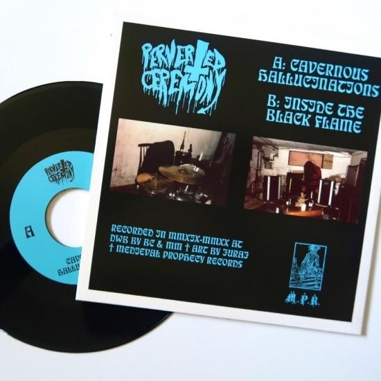 2011年にDemoncy, Von, Blasphemy, Profanatica, Archgoat, Beheritの影響のもと結成、デモ、2017年の傑作1stアルバム、EP、フィンランドのWITCHCRAFTとのSPLITアルバムと一貫してアンチ・テクノロジーな純正原始モービッド・ブラックメタルを貫き通すこのグループですが今年に入ってこんな最新EPをリリースしていたんですね!しかもドーナツ盤で!!