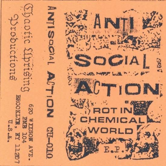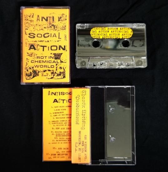 このレーベルはMax君らしいUKハードコアパンクなリリースが続くのかと思ったらこりゃ意外、ANTISOCIAL ACTIONなる完全反音楽スピードノイズコアグループ(ユニット)によるカセット作が2タイトル同時リリース!