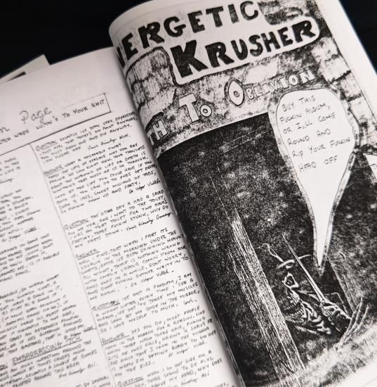 ”Yukk"という A4サイズ全16ページのコミック本は当時のオリジナル盤に付属していたのではなく、オリジナル盤リリース前にアルバムの宣伝も兼ねてメンバーにより制作されギグで配布されていたもののようですが随所に宣伝文句のみならずバンドをモチーフにした沢山の漫画やメンバーによるQ & Aコーナーもあり、DEATHRASHかつコミカルで楽しい内容となっております!