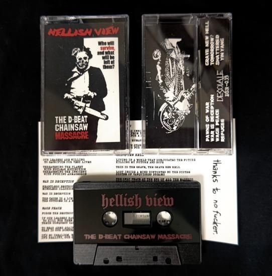 当店御利用のDマニアックスな皆様お馴染み、U.S.ミネアポリス産真性D-BEAT RAW PUNK原理主義グループ、HELLISH VIEWがあのNYC D-BEAT RAW PUNK伝説グループNO FUCKERと敢行した2022年MID WEST合同ツアーの際に物販として用意していた最新音源8曲を収録したプロコビーカセット!!
