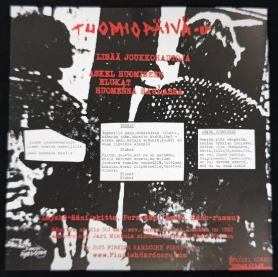 以前1983年リハーサル音源カセットの復刻版が入荷していたPYHAKOULU前身グループの1982年唯一のスタジオ音源を片面7インチEPレコード化した2023年FINNISH HARDCOREリリース!