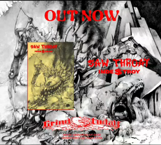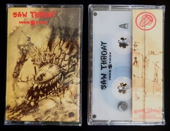 UK STENCH GRIND CRUST名グループSORE THROATがTHE SWANS、SAINT VITUS、HAWKWIND、AMEBIX等影響下のスロー&ヘヴィー・サウンドに挑戦すべく別名義SAW THROATで1989年に発表した問題作アルバム”Indestory"のインドネシアGrind Today Records2023年オフィシャル・プロコピーカセット・リイシュー盤!