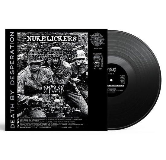 FORGET、VIDA MUERTA、WORLD BASTARD、VISIONS OF CHAOS、S.N.O.A. といった超アンダーグラウンド完全D-BEAT RAW PUNK原理主義グループで活躍するドイツはベルリン在住奇才ドラマー&ヴォ―カリストJulio君によるソロ・プロジェクトNUKELICKERSと、その正体が未だに謎のトータルDISASTER& DISCLOSEタイプ真性D-BEAT RAW PUNKグループBIPOLARによる2023年SPLIT 7'EP!
