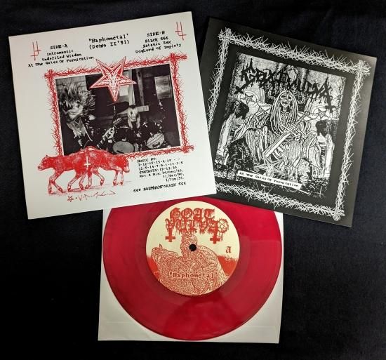 以前WEREWOLF RECORDSからリリースされたベスト盤LP(ご注意:本音源も収録されております)以外でGOAT VULVAのオフィシャル・レコードというのは一切存在せず、この”Bafometal”デモも過去に何度か非正規でレコード化されてきたようですがそれすらプレミアが付いて入手激困難という状況でしたのでこうして手に取ると非常に感慨深いものがあります!SCUMやけど!!