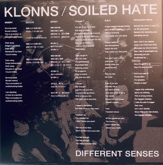 東京NEW WAVE OF JAPANESE HARDCORE "KLONNS"と、東京POWER VIOLENCE "SOILED HATE"の2バンドによる2021年スプリット音源がドイツRSRよりアナログ盤片面LPにて2024年限定リリース!