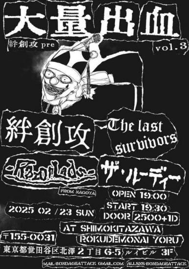 ex-NO SURRENDER〜bEERPiGsのメンバーはじめパンクロック、クラスト、スラッシュメタル好きな20代メンバーが集まって結成されたハードコアパンクバンド、との事ですがとにかく派手でトッポくて(死語)勢い有り余ったステージングに恐らくメンバーと同世代であろう若い鋲ジャンPUNXが暴れ回る姿にはやはりワクワクせざるを得ないワケでして実際若い客がすっかり減ってしまっていた東海シーンがRazorLadsの出現のおかげで勢いを取り戻しつつあるとか?
