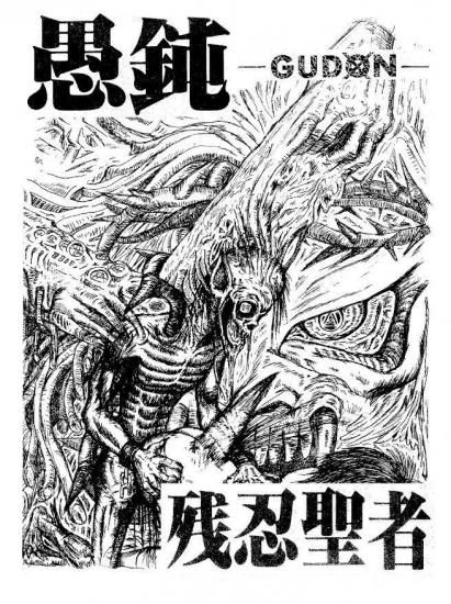 基となったのは再始動の数年前にBLOOD SUCKERレコード周年用に残忍聖者をイメージしてGUYが描いた作品で(表記は残忍音源)、この発売を機に正式に「愚鈍:残忍聖者」としてのリリースが決定しました!