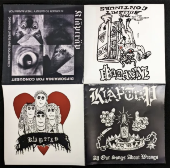 活動停止してしまったらしいU.K.DOOM〜E.O.W (EXCREMENT OF WAR)〜BLOODSUCKING FREAKS〜RUIN〜SLAKTMASK etcの名ドラマーSTICK氏が現在ドイツのベルリンに拠点を移して(?)活動する4人組グループKLAPTRAPが2023年から24年の間にリリースした3本のデモ音源をコンパイルした2024年ディスコグラフィーCDR by U.K.CHAOS CONTROL!