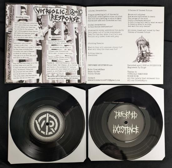 そして遂に発売開始、新潟 / 東京の DEFORMED EXISTENCE 及びUKの VITRIOLIC RESPONCE 2バンドによる、現行クラストコア&メタリックD-BEAT HARDCORE 2025年最新SPLIT 7’EP、両バンド共初のレコード・リリース!