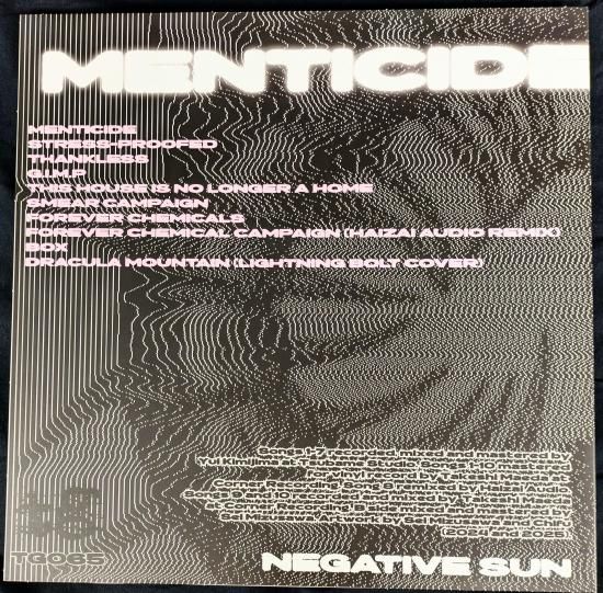 2022年結成、要注目TOKYO POWERVIOLENCE HARDCORE4人組グループ、NEGATIVE SUNが2024年にリリースした限定50枚(?!)自主リリースCD "Menticide" 収録の7曲に加え、未発表4曲を追加収録した限定アナログ盤LP by アメリカNYC TWELVE GAUGE RECORDS!