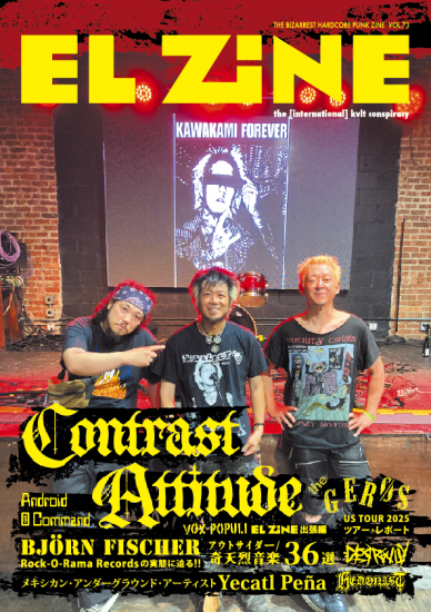 EL ZINE最新号のvol.73では、6月5日にセカンド・アルバムをリリースし、3度目となるアメリカ・ツアーを敢行した三重県のD-beatハードコア・パンク・バンド、CONTRAST ATTITUDEが表紙及び巻頭!