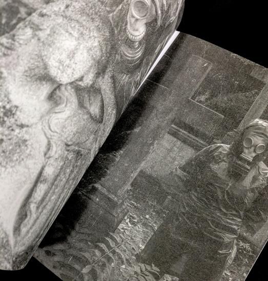 無駄な説明は一切なし、戦争及び人間の愚行がもたらす破壊と倒錯のイメージがモノトーンの凄まじいガスマスク荒廃写真で展開される圧倒的内容!