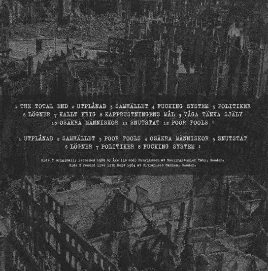 とはいえ残した音源自体は非常に少なく、オリジナルはかの ”Stockholm Mangel" オムニバスに収録されていたスタジオdemo12曲と1984年ライヴ7曲のみ、これら計19曲が本LPには収録!